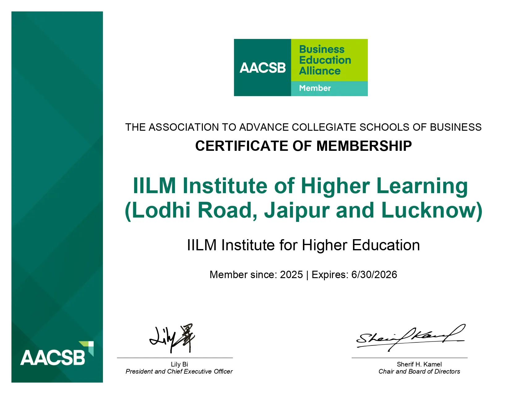 IILM Academy of Higher Learning, Jaipur is proud to announce that it is now a member of The Association to Advance Collegiate Schools of Business (AACSB), one of the world’s most prestigious accreditation bodies for business education.