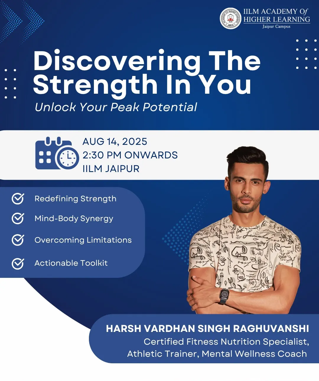 In line with this vision, IILM Jaipur is organizing a special session titled “Discovering the Strength in You”, designed to help students recognize their inner potential and harness it with clarity and confidence.
